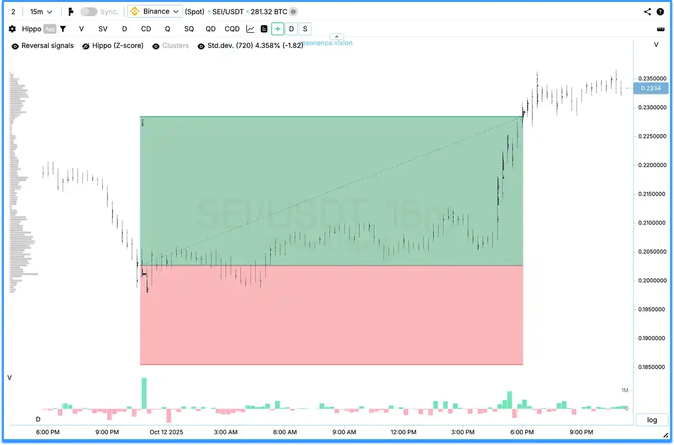Aires Reversal signals are a Resonance algorithm that analyzes clusters, limit orders, and other market data. It automatically finds potential entry points, defines stop-loss and take-profit levels, and sends the signal to your Telegram bot.